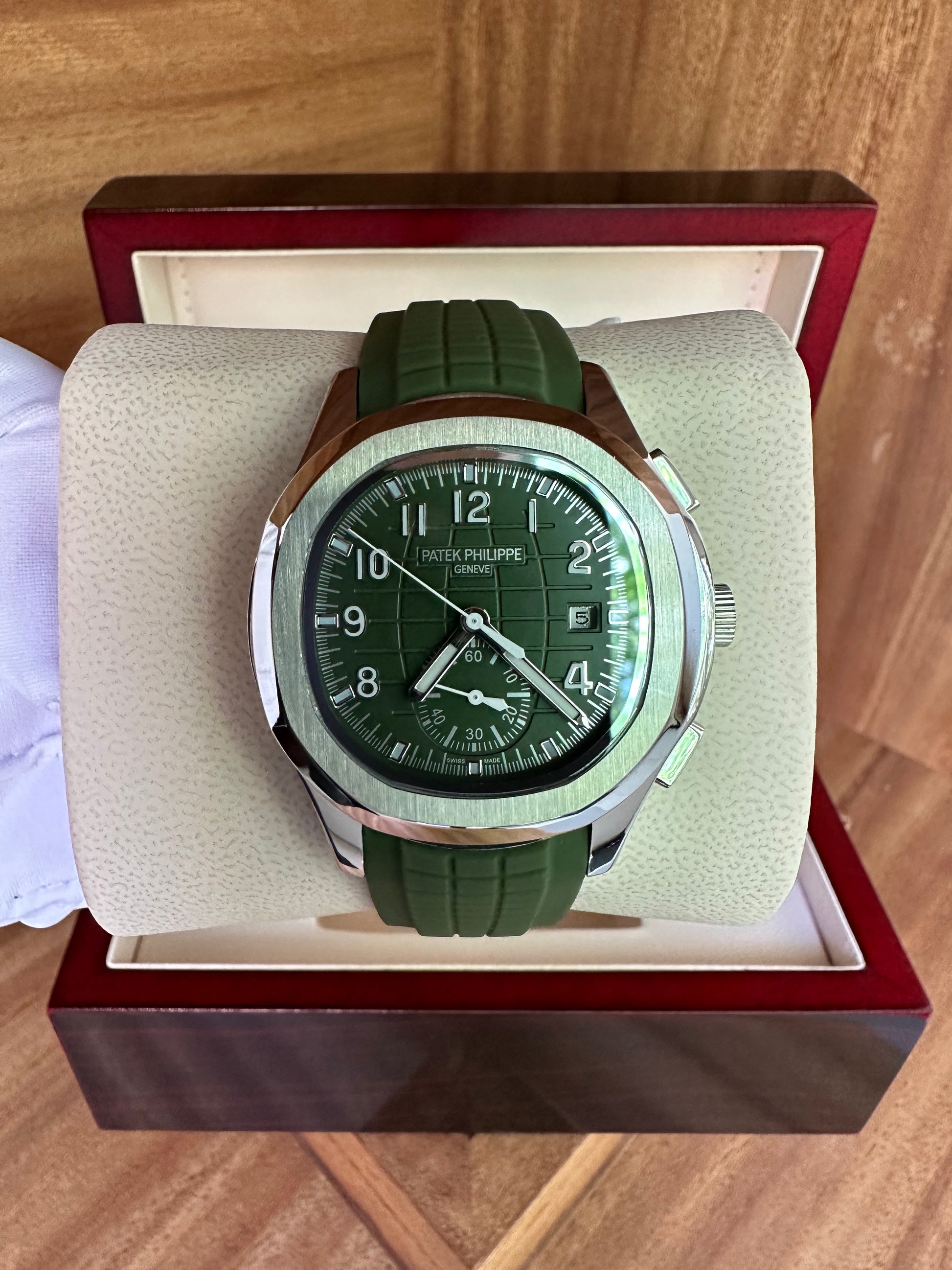 El Aquanaut Chronograph verde árabe es una pieza que combina frescura y carácter con un estilo inconfundible. Su esfera en un vibrante tono verde transmite energía y modernidad, mientras la numeración árabe le otorga un aire distintivo y cosmopolita. El cronógrafo aporta precisión y dinamismo, integrándose con armonía en el diseño contemporáneo de la colección. Con un espíritu deportivo y sofisticado, este reloj destaca por su versatilidad, capaz de acompañar tanto en la vida urbana como en los momentos de mayor exclusividad