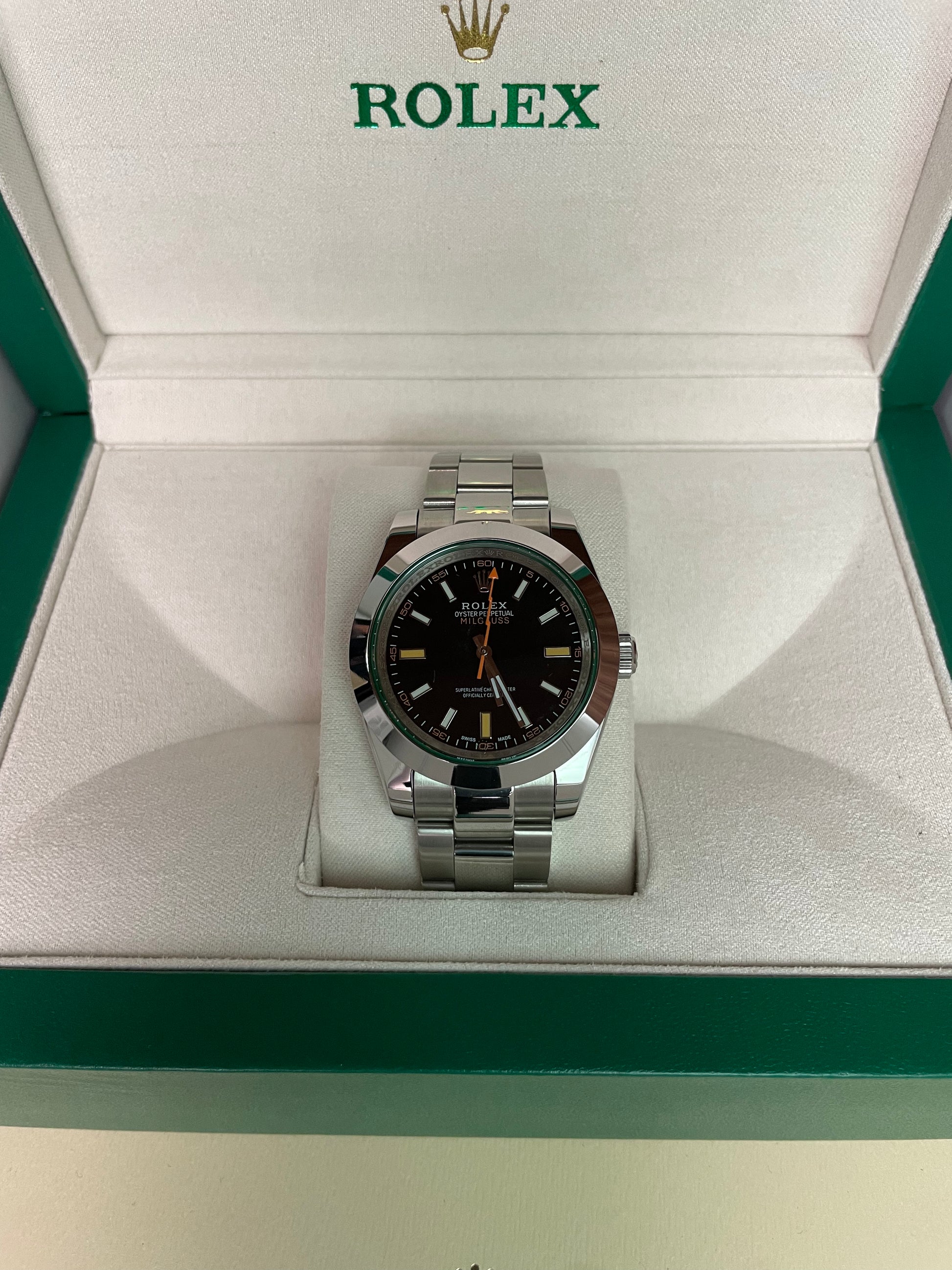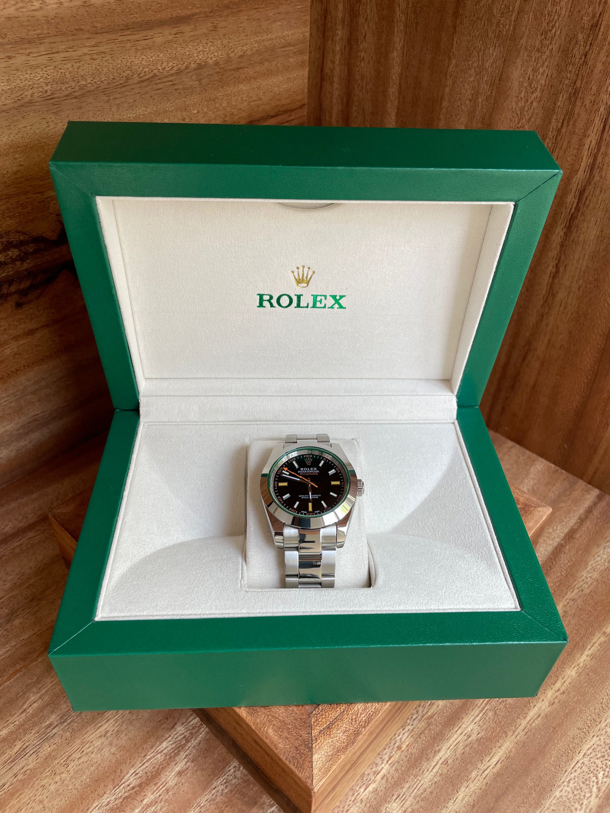 El Milgauss con esfera negra ofrece una estética sobria con detalles que lo distinguen, como el segundero en forma de rayo y toques de color sutiles. Diseñado originalmente para resistir interferencias magnéticas, su diseño técnico se combina con una personalidad única, perfecta para quienes buscan algo fuera de lo convencional.