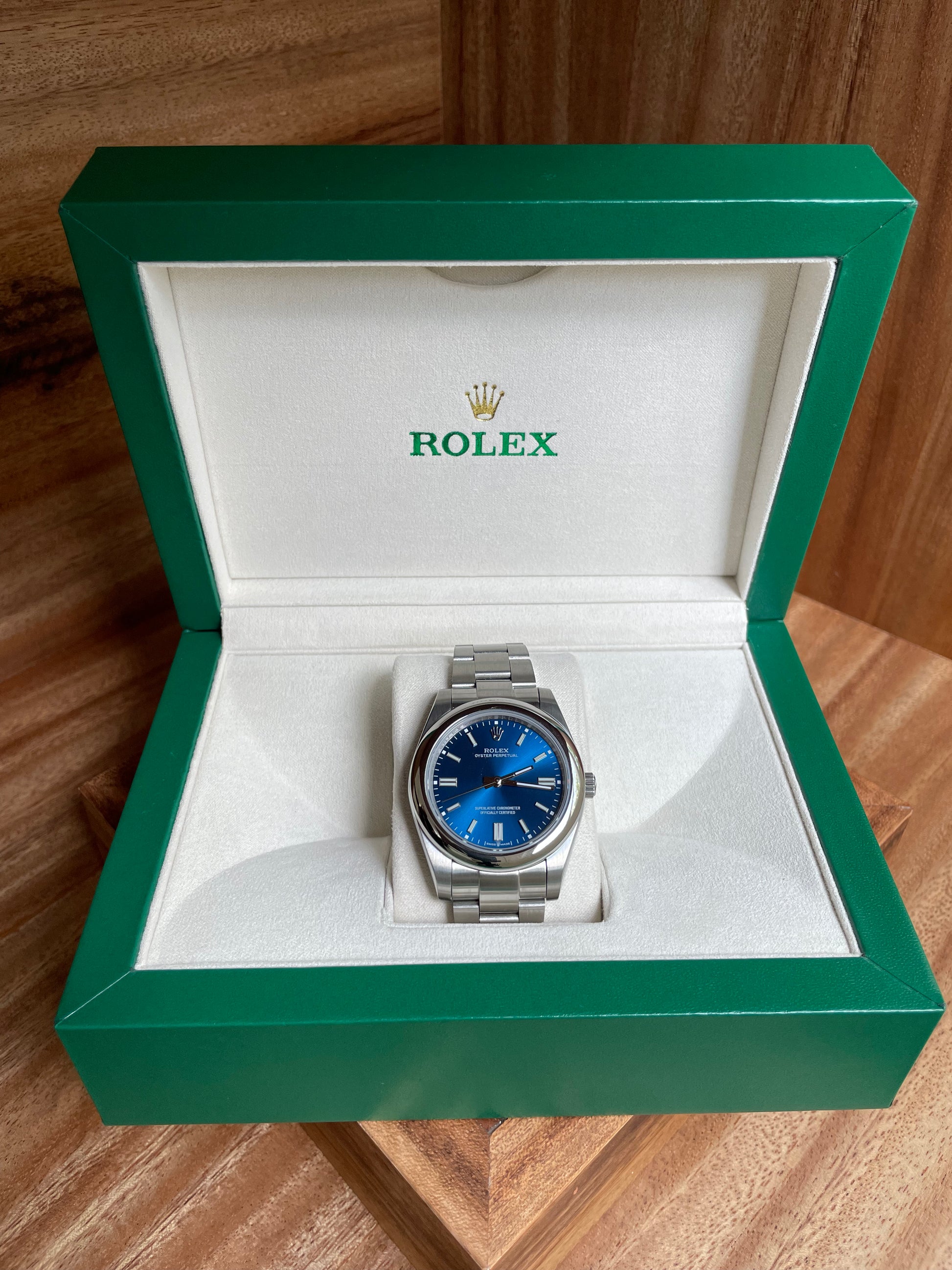 Este Oyster Perpetual con esfera azul es la definición de elegancia sencilla. Su diseño atemporal, combinado con un color profundo y clásico, lo convierte en una opción ideal para el uso diario. Sofisticado sin excesos, es una pieza que combina precisión con discreción.