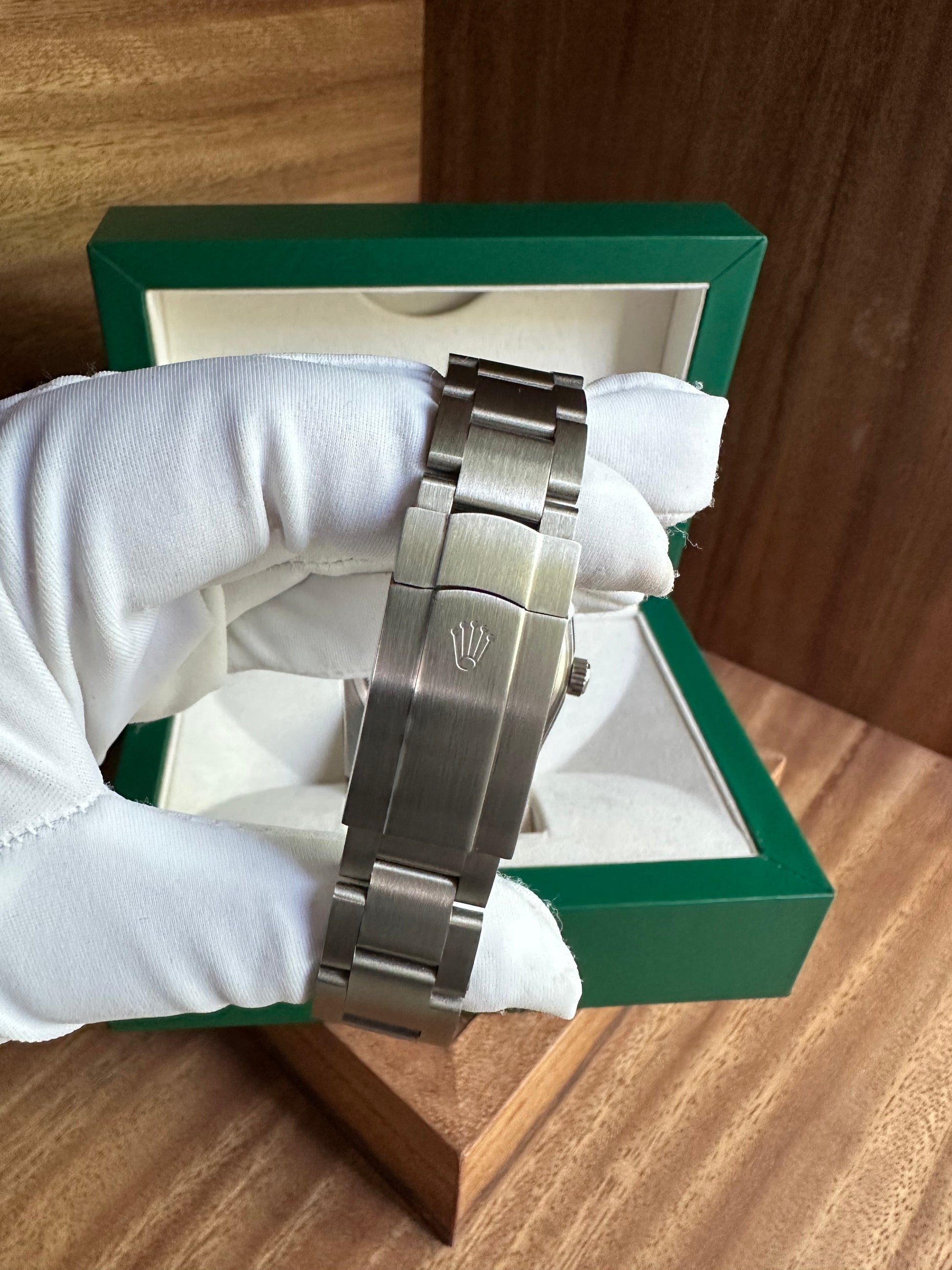 El Oyster Perpetual con esfera rosa destaca por su estilo fresco y contemporáneo. Su tono suave aporta un aire distintivo y versátil, capaz de combinar tanto con un look elegante como con un estilo más casual. Fiel a la esencia de la colección, refleja pureza en el diseño, precisión en su funcionamiento y un atractivo atemporal que lo convierte en una pieza ideal para quienes buscan un reloj con personalidad y sutileza.
