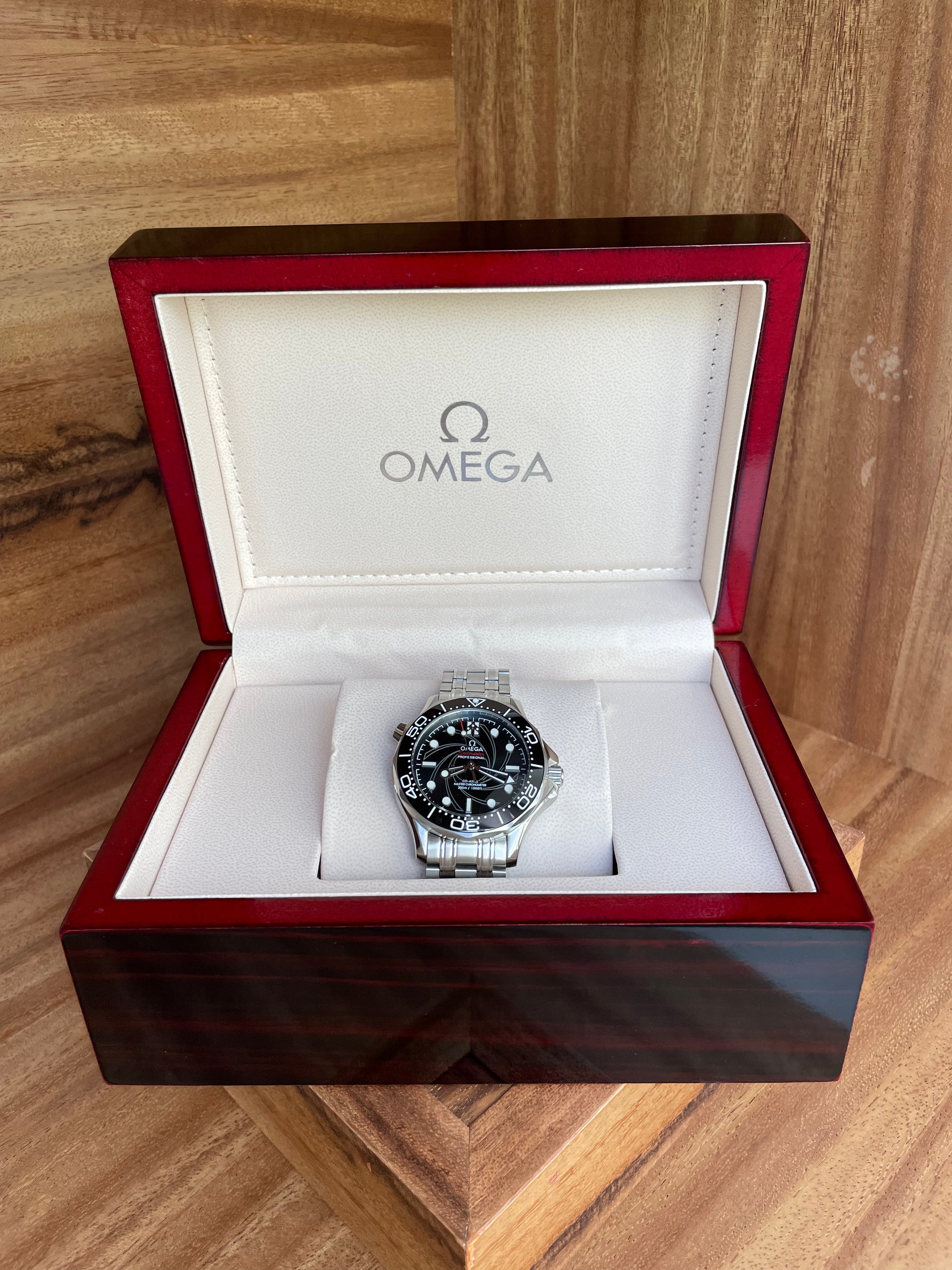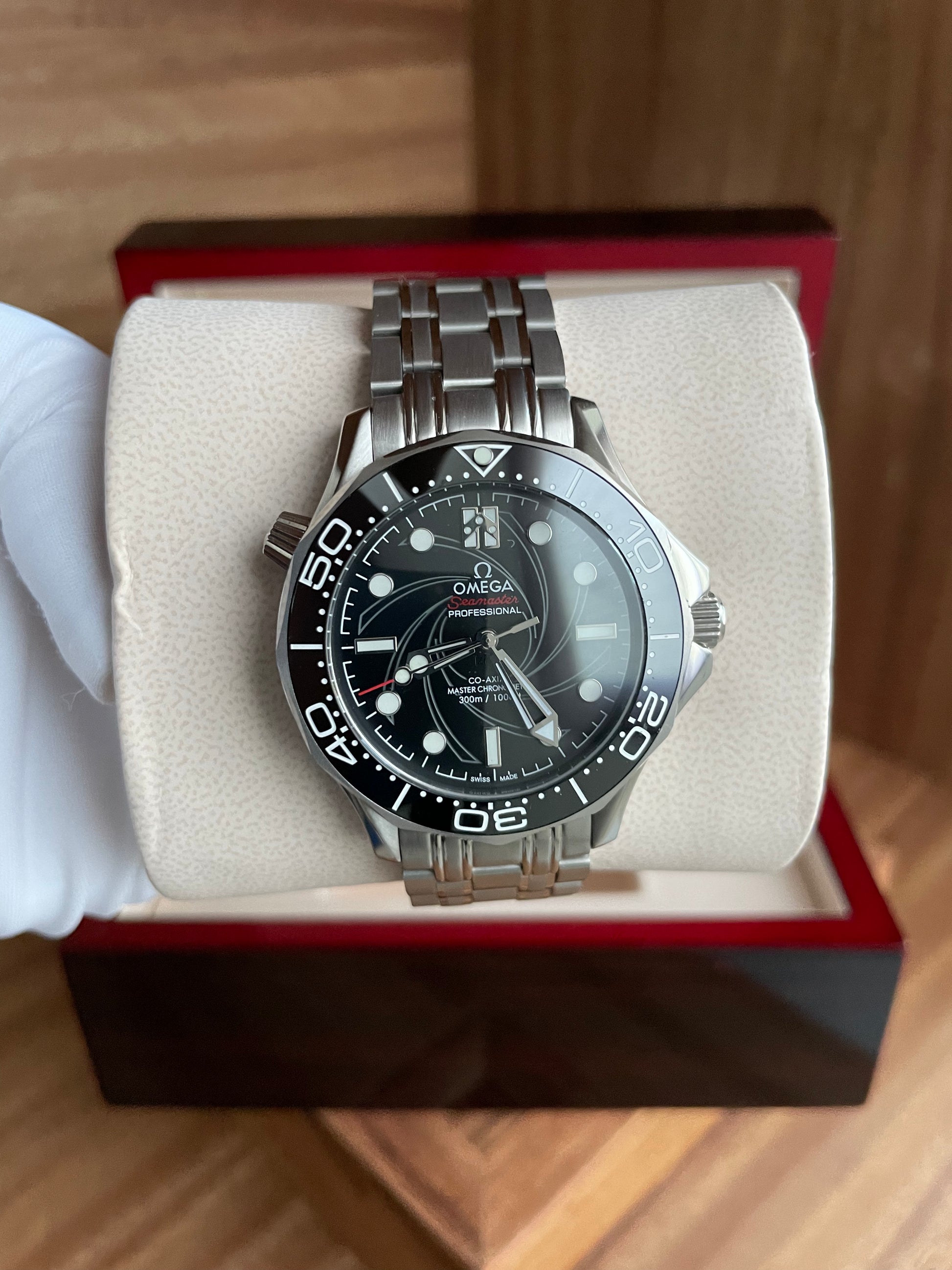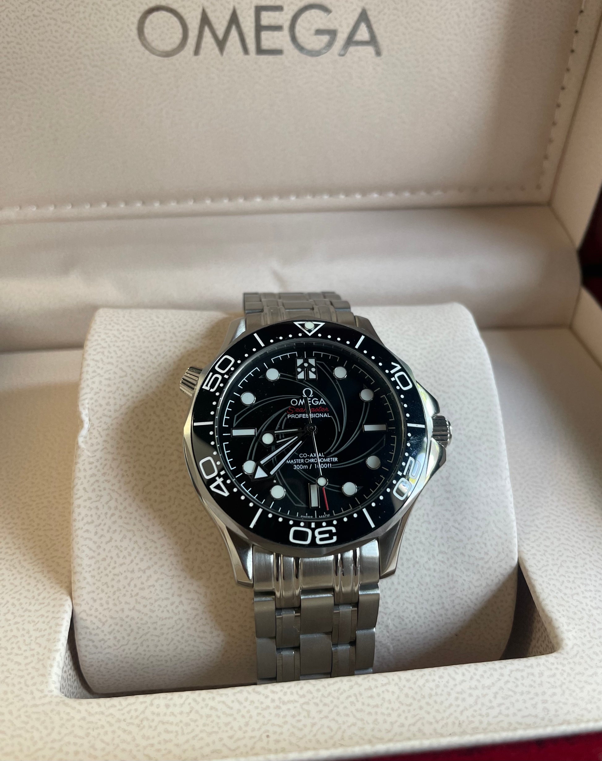 Diseñado con la participación de Daniel Craig, el Seamaster 007 Edition es el reloj oficial de James Bond: ligero, resistente y discreto. Su caja y el brazalete tipo mesh le dan una presencia táctica y elegante a la vez.